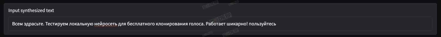 - В поле «Input synthesized text» введите текст который нужно озвучить: