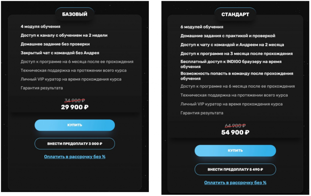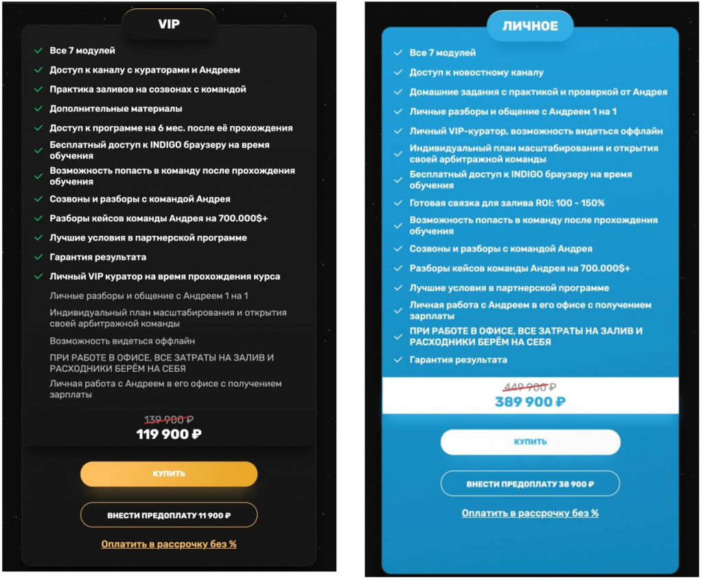 Многие могут подумать, что критика от тех, кто купил первые 3 тарифа, может быть не обоснована, ведь ты получаешь только теоретические «базовые» знания, а работаешь уже сам. Безусловно, заработок денег, зависит от того, как ты применишь знания на практике. Но, пакет личного обучения, был обещан с настолько углубленной практикой, где тебя просто «взяв за руку» доведут до гарантированного результата. Однако, этого не произошло — мы не знаем ни один ученика, максимального пакета обучения, так же как и всех остальных тарифов — кто бы заработал хоть что-то!