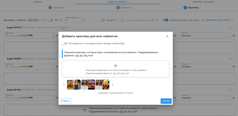 - Далее загружаем нужные нам креативы.