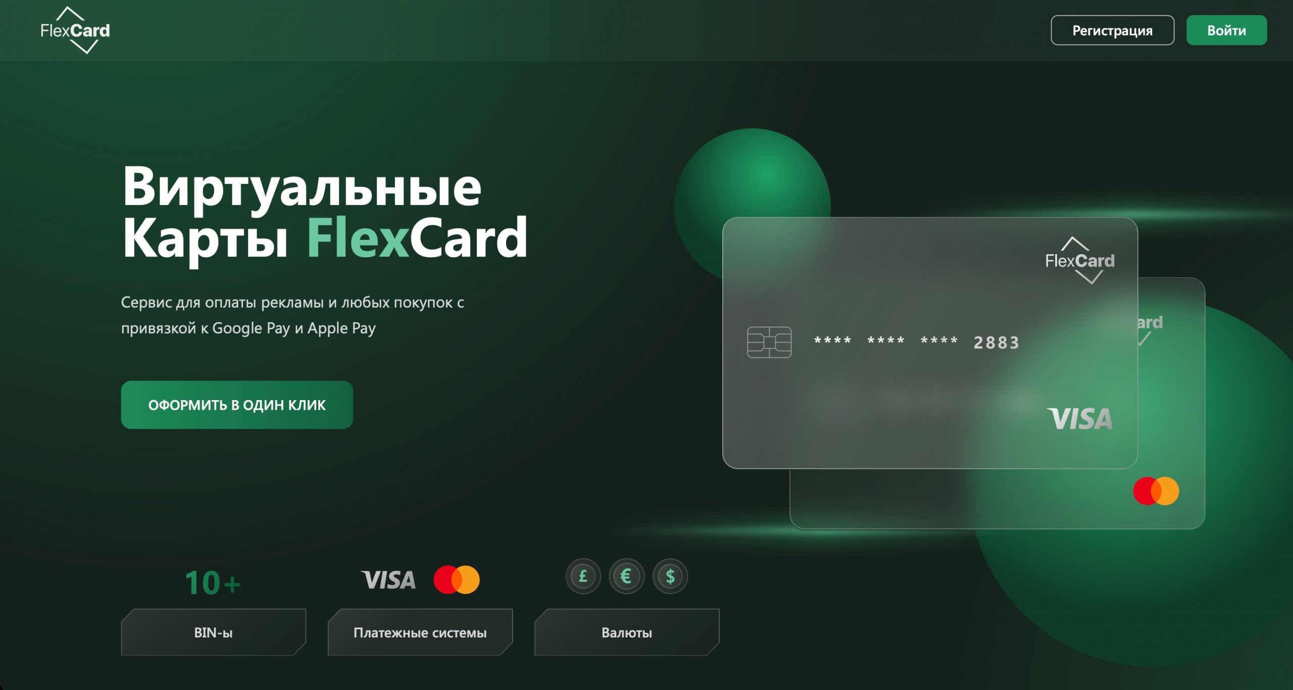 FlexCard — virtual cards with reliable BINs and unlimited issuance for FB, TikTok, Google, and other popular traffic sources.