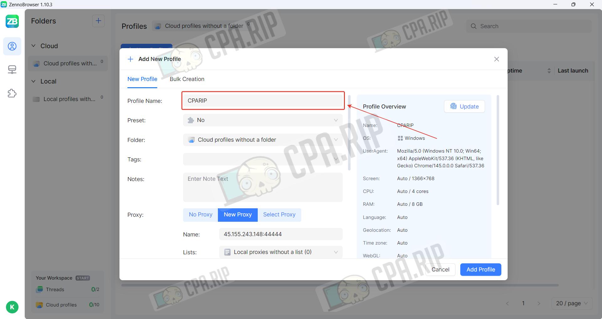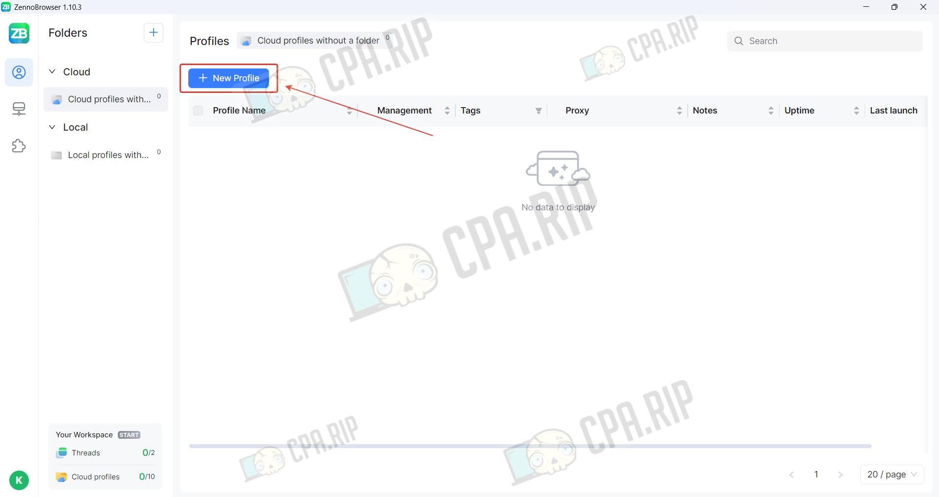 Local and cloud profiles are created in the same way. Click ‘New Profile’.