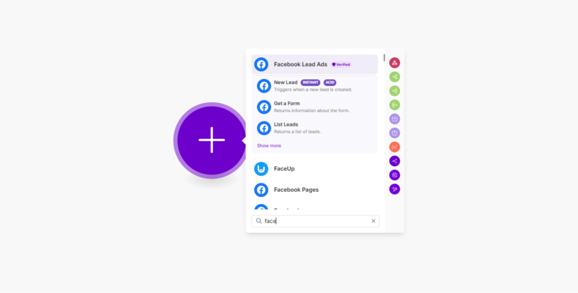 В модулях выбираем «Facebook new lead».