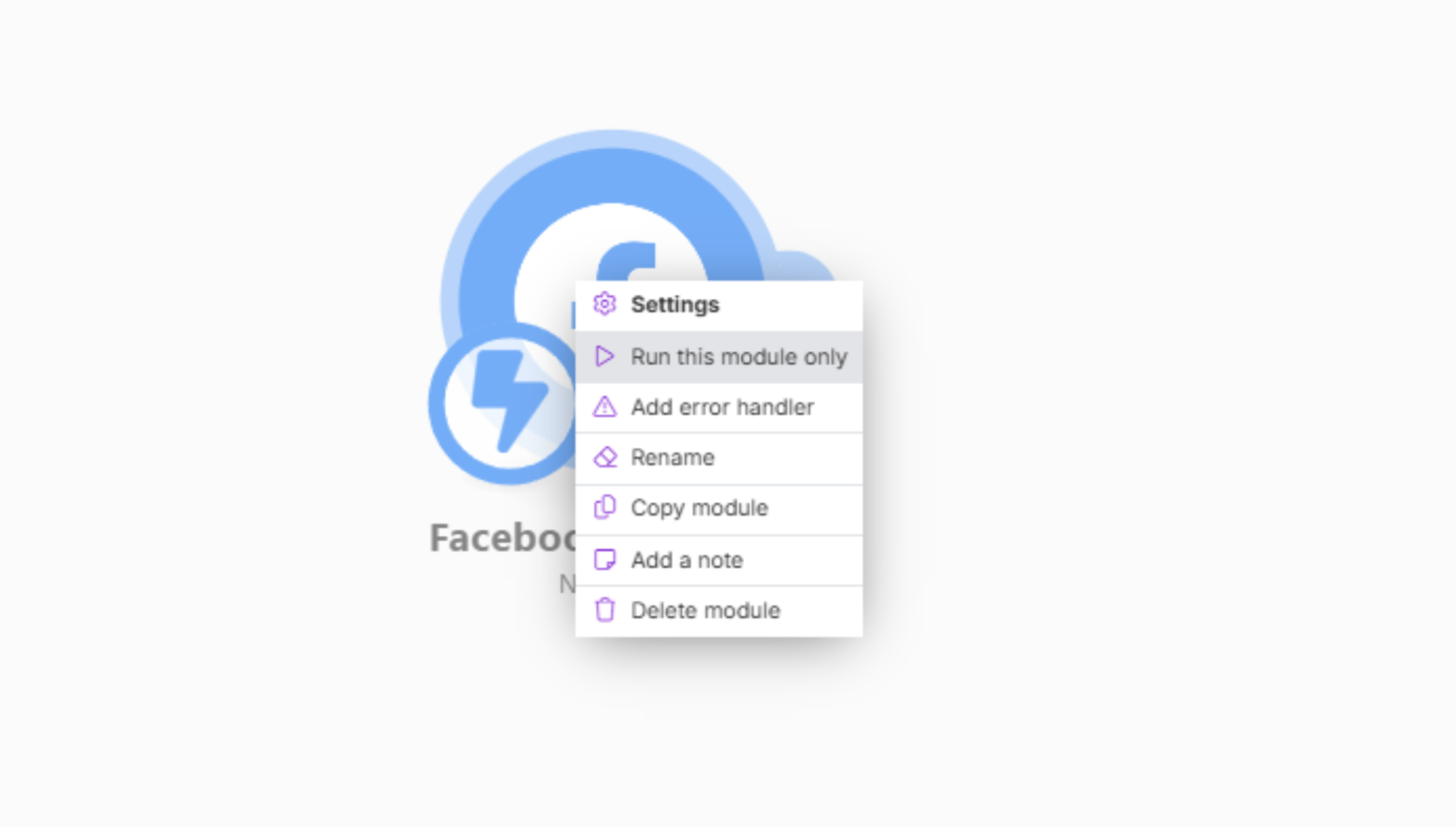 В Make.com кликаем по модулю «Facebook Ads», затем выбираем «Run this module only».