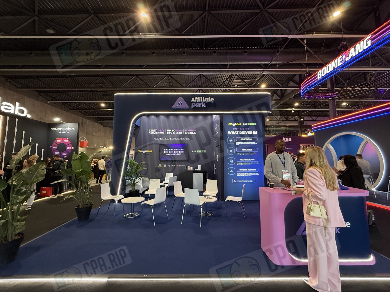 Фотографии всех стендов с конференции iGB Affiliate 2026 в Барселоне 20-21 января, с картой стендов, фото и ссылками.