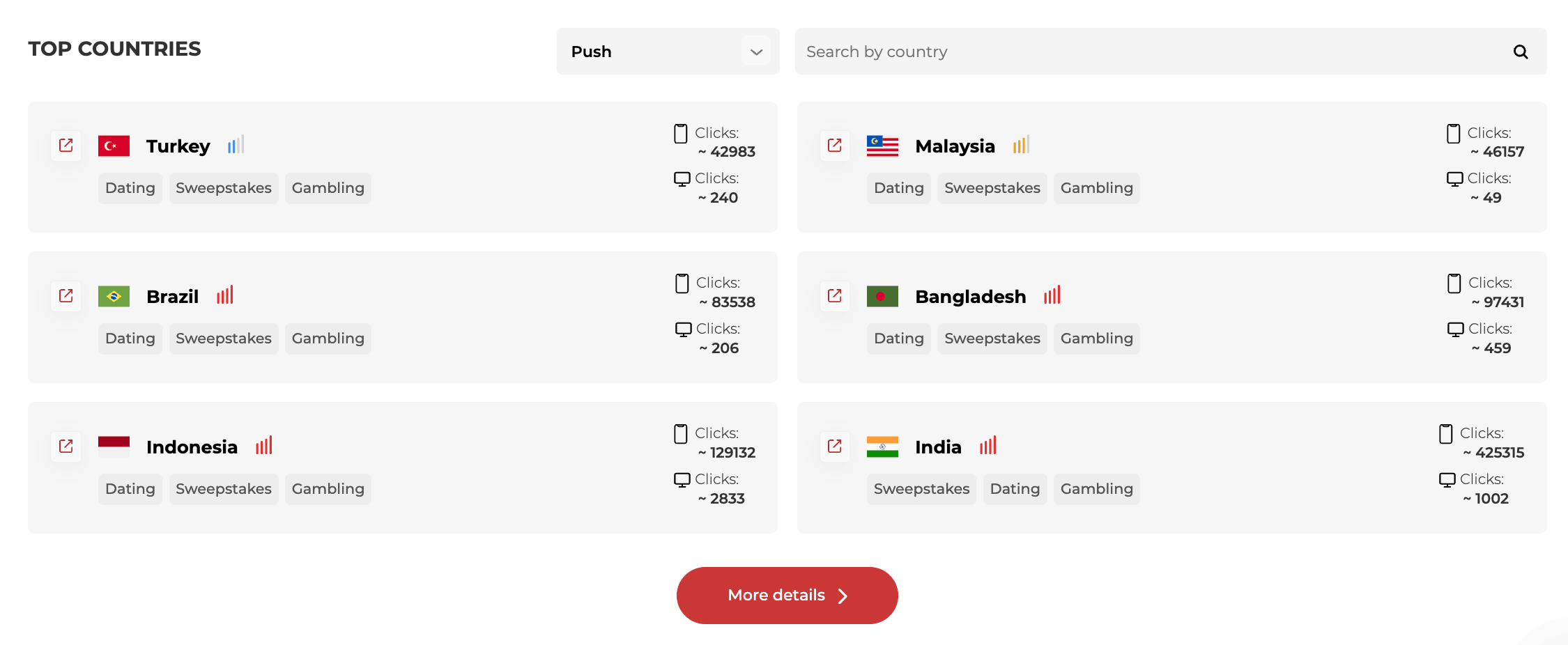 На главной странице личного кабинета мы видим топ стран: