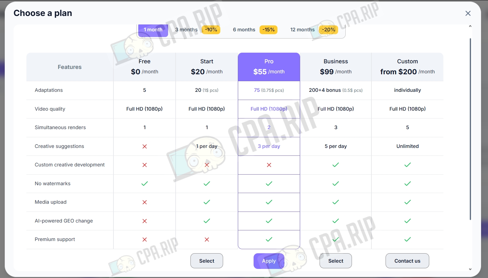 - Custom — from $200/month